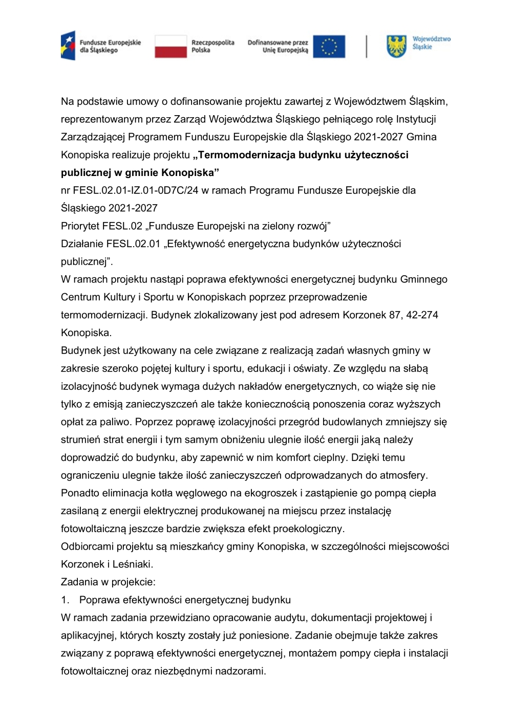 Termomodernizacja budynku użyteczności publicznej w gminie Konopiska