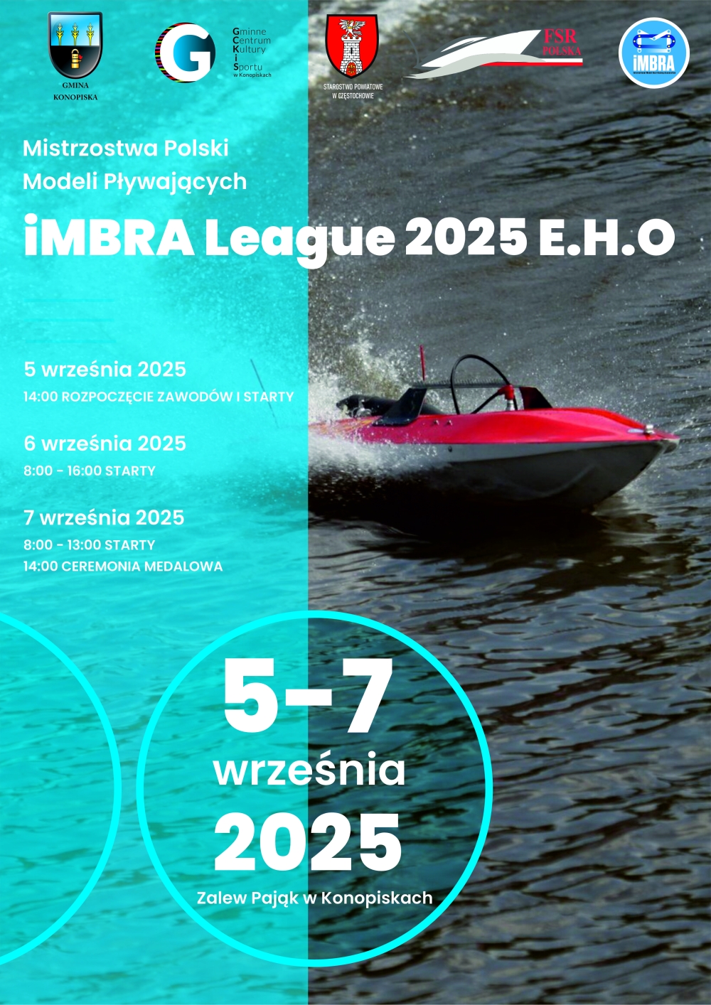 Zapraszamy na Mistrzostwa Polski Modeli Pływających – iMBRA League 2025 E.H.O, które odbędą się w dniach 5–7 września 2025 roku nad zalewem Pająk w Konopiskach.